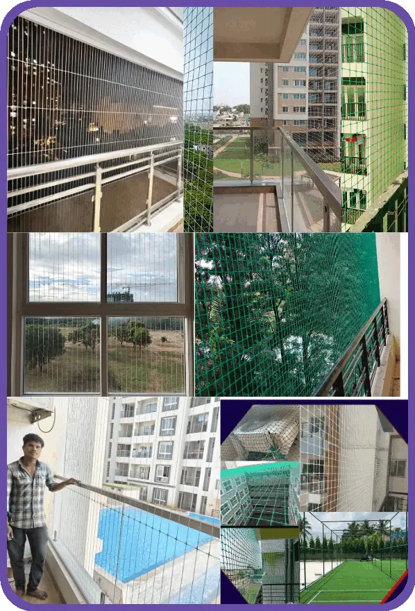 Our wide range of services covers Balcony Safety Nets, Invisible Grills, Kids’ Safety Nets, Premium Cloth Drying Hangers, Construction Safety Nets, Duct Area Nets, Industrial Safety Nets, Swimming Pool Nets, Staircase Safety Nets, Monkey Safety Nets, Glass Safety Nets, Coconut Tree Nets, Mosquito Nets, Cricket Practice Nets, Sports Nets, Bird Spikes, Anti-Bird Solutions, Pigeon Nets for Balconies, Bird Control Nets, Agro Shade Nets, Plant Support Netting, Garden Nets, Shade Nets, and more.